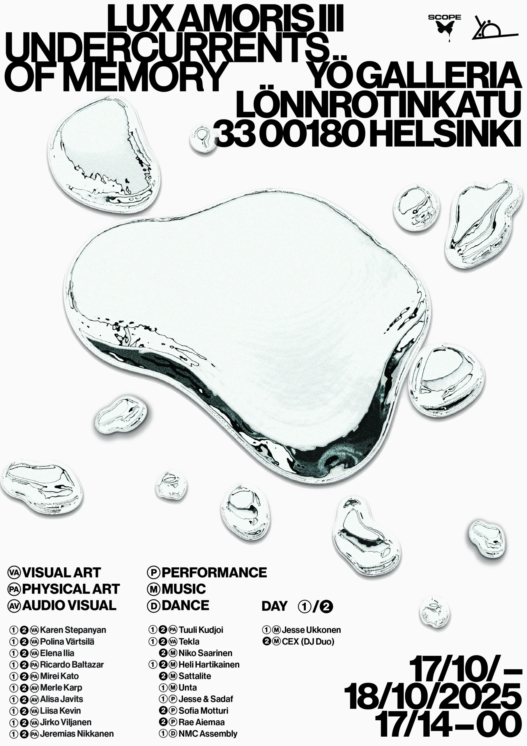 Karen Stepanyan, Polina Värtsilä (Polledatextiles), Elena Ilia, Ricardo Baltazar, Mirei Kato, Merle Karp, Alisa Javits, Liisa Kevin, Jirko Viljanen, Jeremias Nikkanen, Tuuli Kudjoi Tekla, Niko Saarinen, Heli Hartikainen, Sattalite, Unta, Jesse & Sadaf, Sofia Motturi, Rae Aiemaa, NMC Assembly, CEX, Jesse Ukkonen